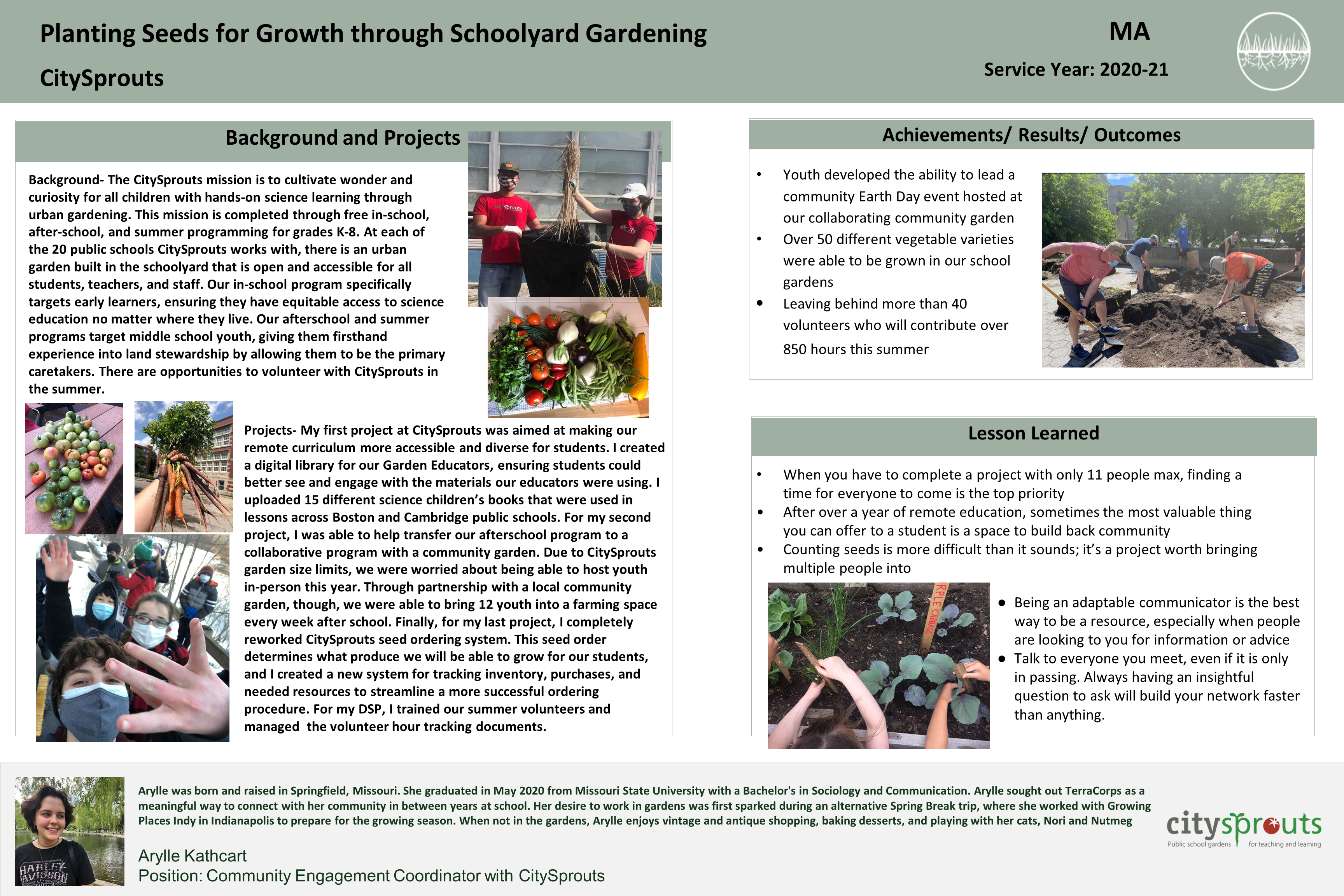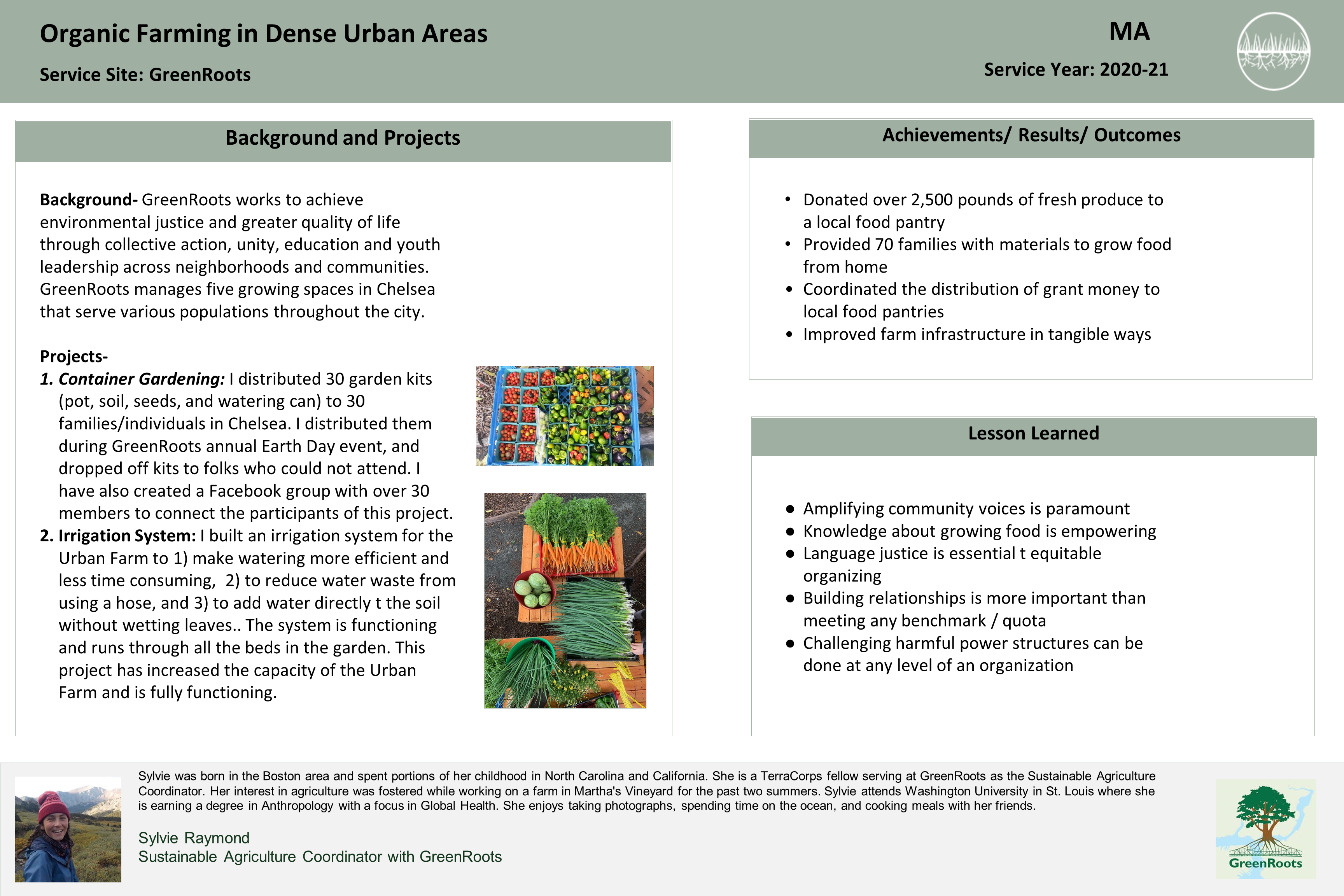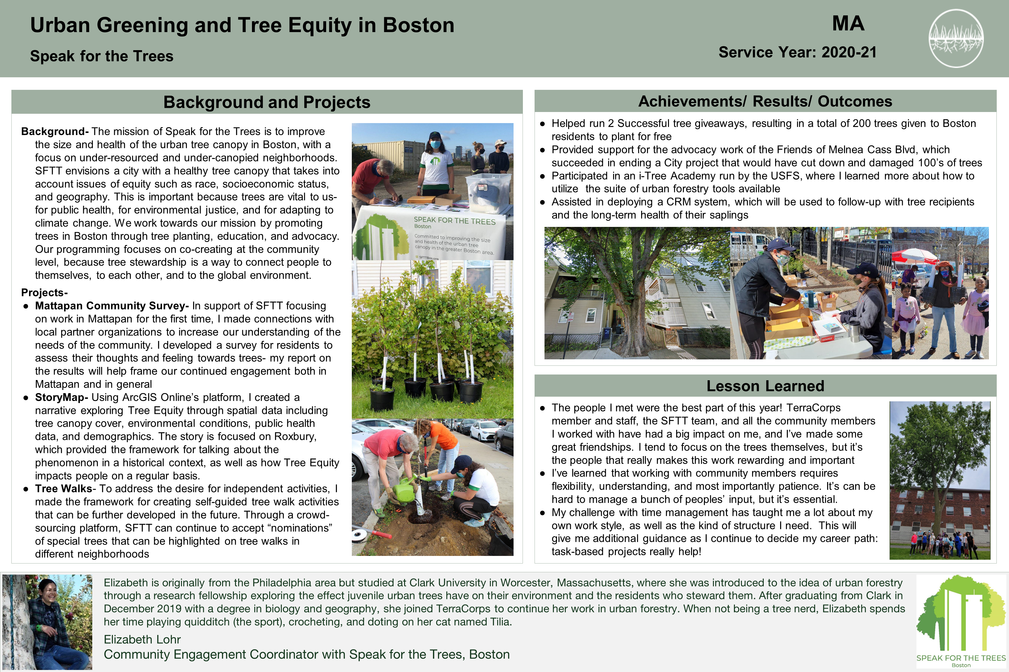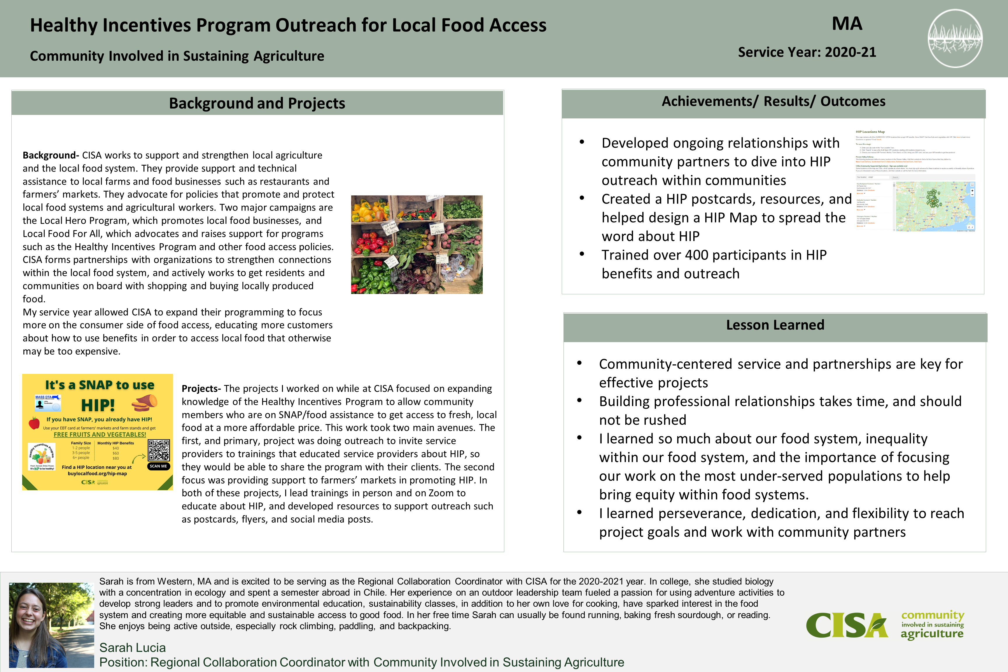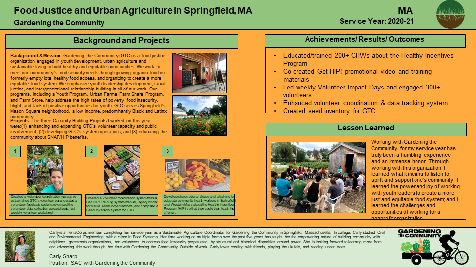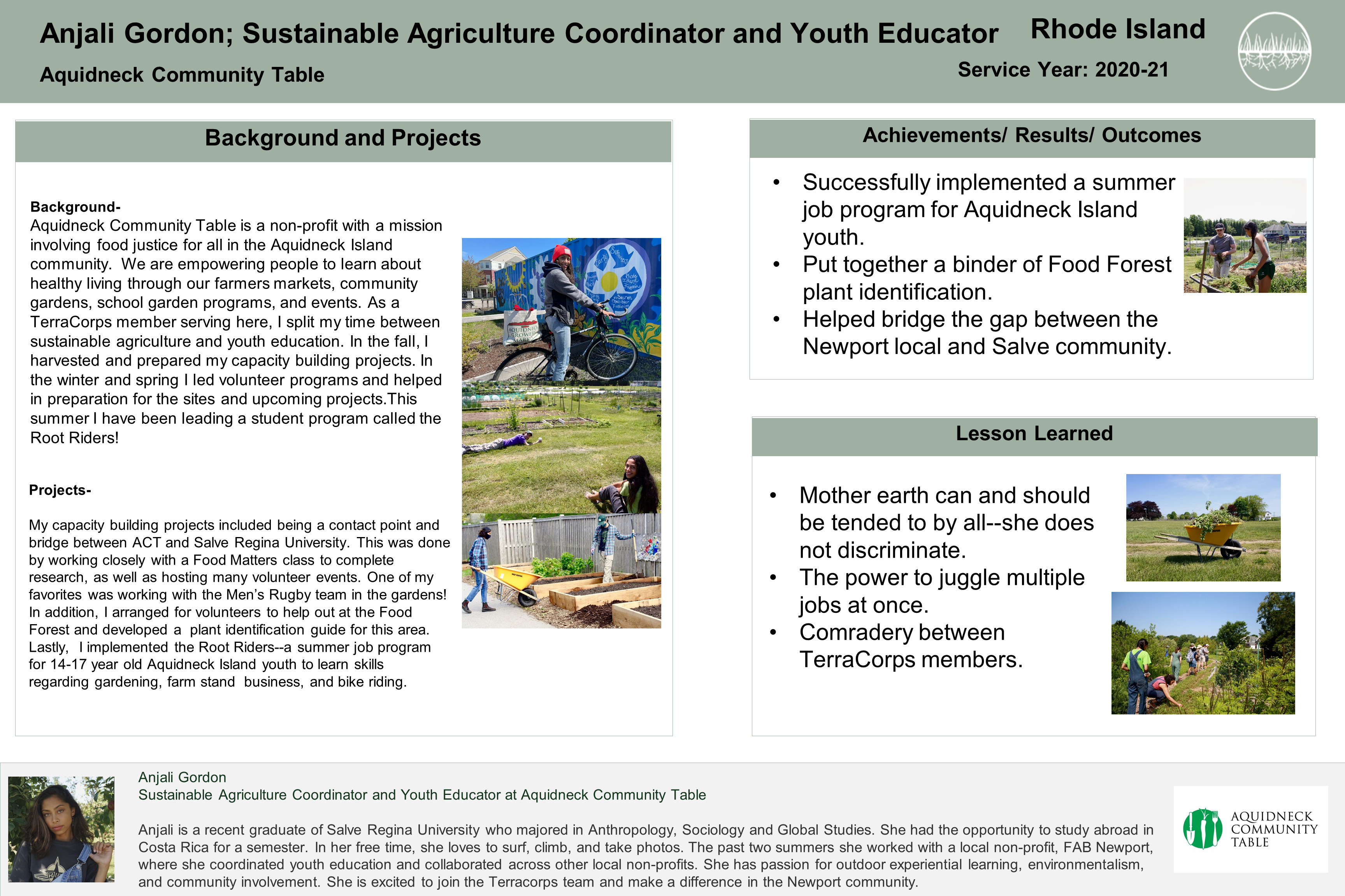 Member Project Posters MASSACHUSETTS 2020-2021 All Community Engagement Youth Education Land Stewardship Regional Collaboration Sustainable Agriculture Aaron Nelson Mount Grace Land Conservation Trust Amy Walker Charles River Watershed Association Anna Smith SEMPBA Anne Flaherty Natick Community Organic Farm Arylle Kathcart CitySprouts Audrey Boraski Hilltown Land Trust Barry Matthews Franklin Land Trust & Hilltown Land Trust Benee Hershon The Food Bank of Western Massachusetts Beth Cronin Round the Bend Farm Brooke Lummis Natick Community Organic Farm Bruce Traban Dartmouth Natural Resources Trust Carly Sharp Gardening the Community Derek Alford Growing Places Elizabeth Lohr Speak for the Trees, Boston Elsa Cline Mass Audubon Evan Foster Attleboro Land Trust Gabrielle Gundry Barnstable Land Trust Jamie Semel Mass Audubon Boston Nature Center Jenna Shea Mass Audubon and the Wareham Land Trust Joelle Boyle Emerald Necklace Conservancy Jonathan Haarstick Sudbury Valley Trustees Kate Schreiber Groundwork Somerville Kate Sutcliffe North Quabbin Regional Landscape Partnership and Mount Grace Land Conservation Trust Katie Adee Full Circle Earth Laura Brockington GreenRoots Laurel Branco Round the Bend Farm Macie Broussard Mass Audubon Conservation Science Maya Sterett Merrimack River Watershed Council Natalie Merline Speak for the Trees Nick Long Mass Audubon North Shore Sanctuaries Patrick Allison Jr. East Quabbin Land Trust Rachel Lee Sharon Mass Audubon Broadmoor Sarah Lucia Community Involved in Sustaining Agriculture Sylvie Raymond GreenRoots Tess O’Day Emerald Necklace Conservancy Victoria Prend Growing Places Zoe Chambliss Natick Community Organic Farm Load More RHODE ISLAND 2020-2021 All Community Engagement Youth Education Land Stewardship Regional Collaboration Sustainable Agriculture Adam Kaszas Aquidneck Community Table Anjali Gordon Aquidneck Community Table Clare Brown Woonasquatucket River Watershed Council Eric Wuesthoff Rhode Island Land Trust Council Joseph Barnes Westerly Land Trust Mike Perrin Audubon Society of Rhode Island Naya Black Woonasquatucket River Watershed Council Oliwia (Olive) Krupinska Southside Community Land Trust Sarah Chin Woonasquatucket River Watershed Council Load More